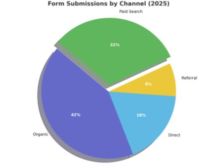 - In the past 3 years, paid search has grown from a supporting channel into a primary driver, with its share of total form submissions increasing from ~20% in 2022 to 32% in 2025.