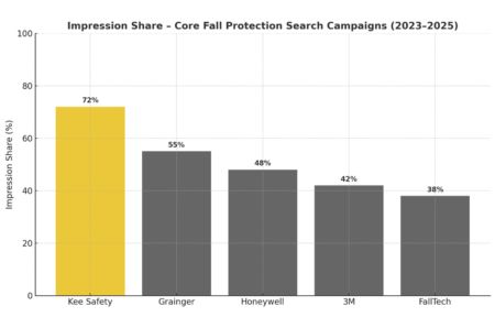 As Kee Guard’s popularity grew, Google began associating it with rooftop fall protection terms more broadly. This pulled Kee Safety into auctions against large competitors with massive budgets, which drove down impression share and top-of-page visibility for its own product.