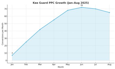 By shifting from branded reliance to solution-focused campaigns, PPC evolved from a support channel into a primary driver of qualified leads. With optimized budgets, smarter keyword targeting, and creative refinement, campaigns like Kee Guard now consistently deliver high-volume, cost-efficient conversions that feed directly into the sales pipeline.