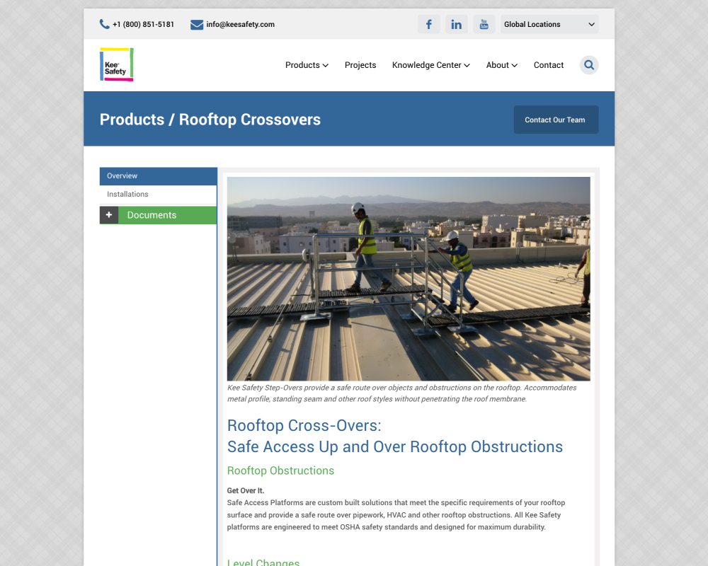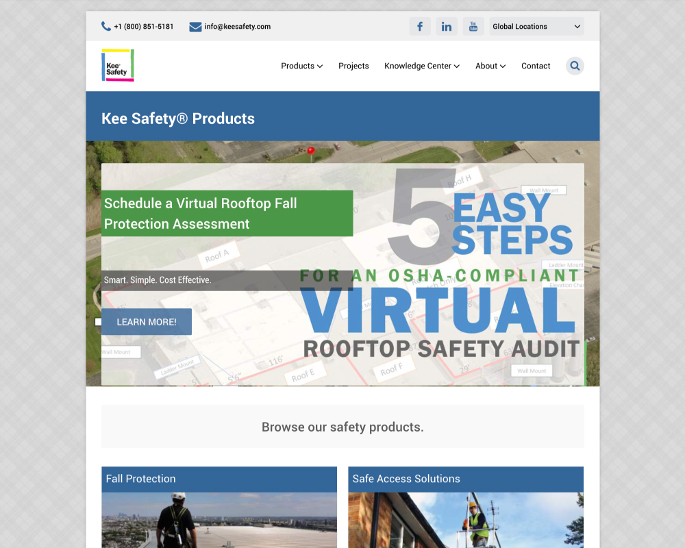 The previous Kee Safety website served as a functional hub but lacked consistency in design, messaging, and user experience. Since then, the marketing approach has been modernized with a unified brand identity, cleaner visuals, and a focus on lead generation. Today, every page reflects a stronger alignment between design and strategy — balancing professional presentation with tools that drive measurable business results.